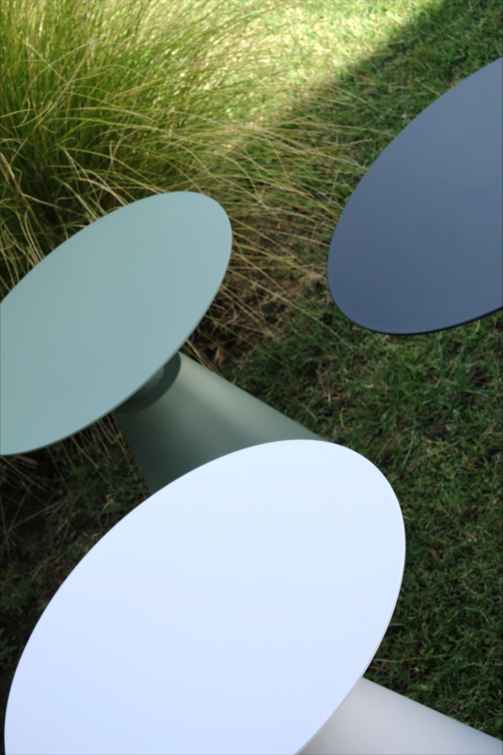 Mesa auxiliar Haven de exterior. De estructura de aluminio. Disponible en tres variantes de color: negra, blanca, verde y gris oscuro.